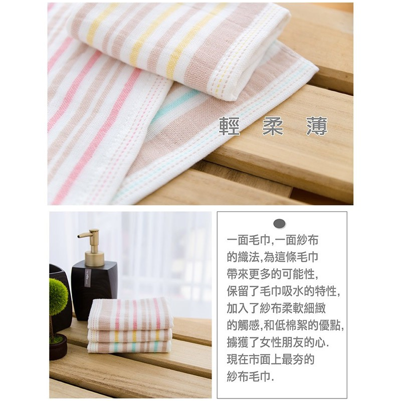 保留了毛巾吸水的特性,加入了紗部柔軟細緻的觸感,和低棉絮的優點,